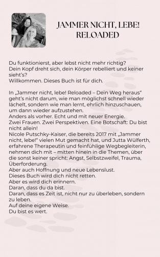 In „Jammer nicht, lebe! Reloaded – Dein Weg heraus“ geht’s nicht darum, wie man möglichst schnell wieder lächelt, sondern wie man lernt, ehrlich hinzuschauen, um dann wieder aufzustehen.